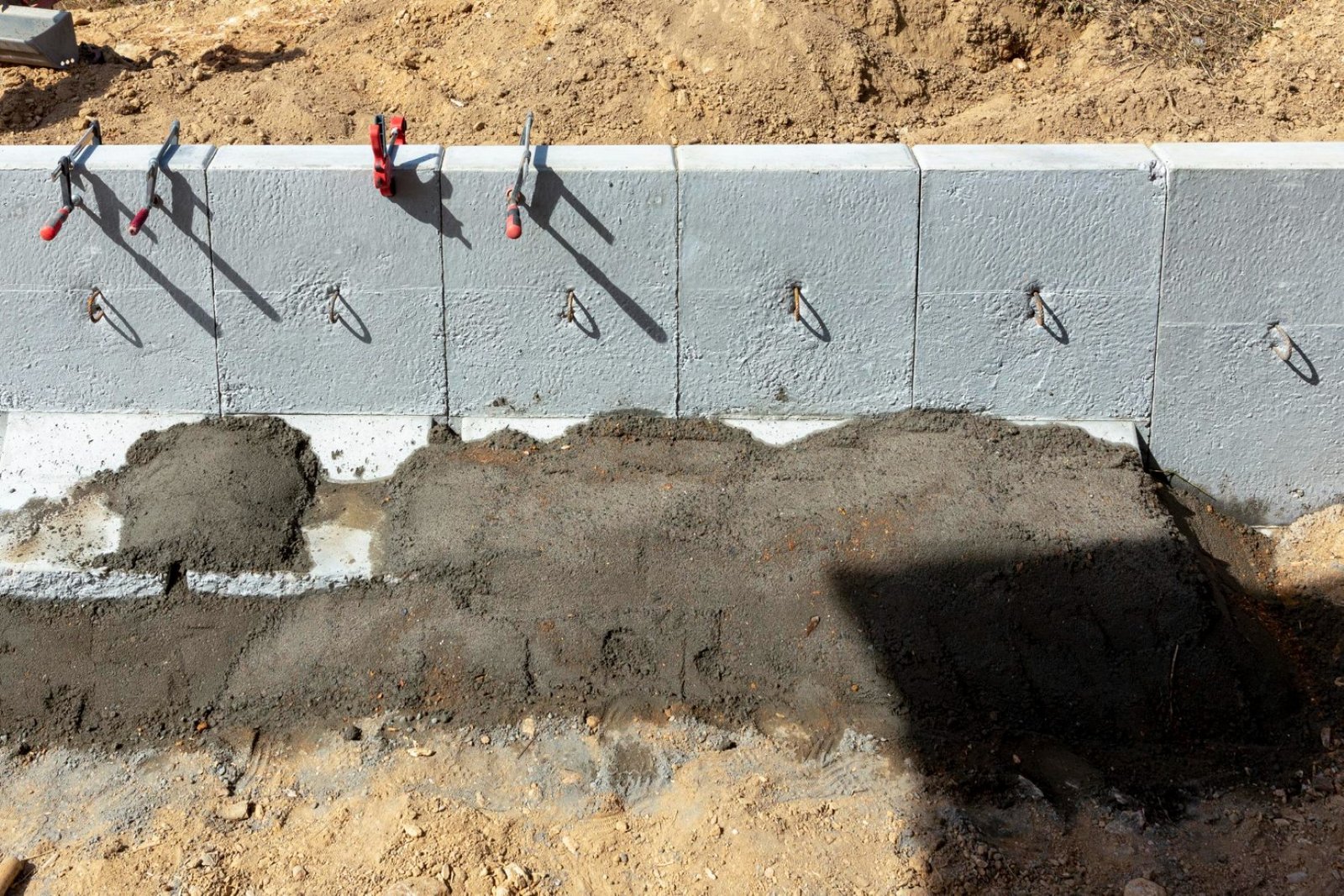 Professionelle Verlegung von L-Steinen für Mauern und Abgrenzungen.