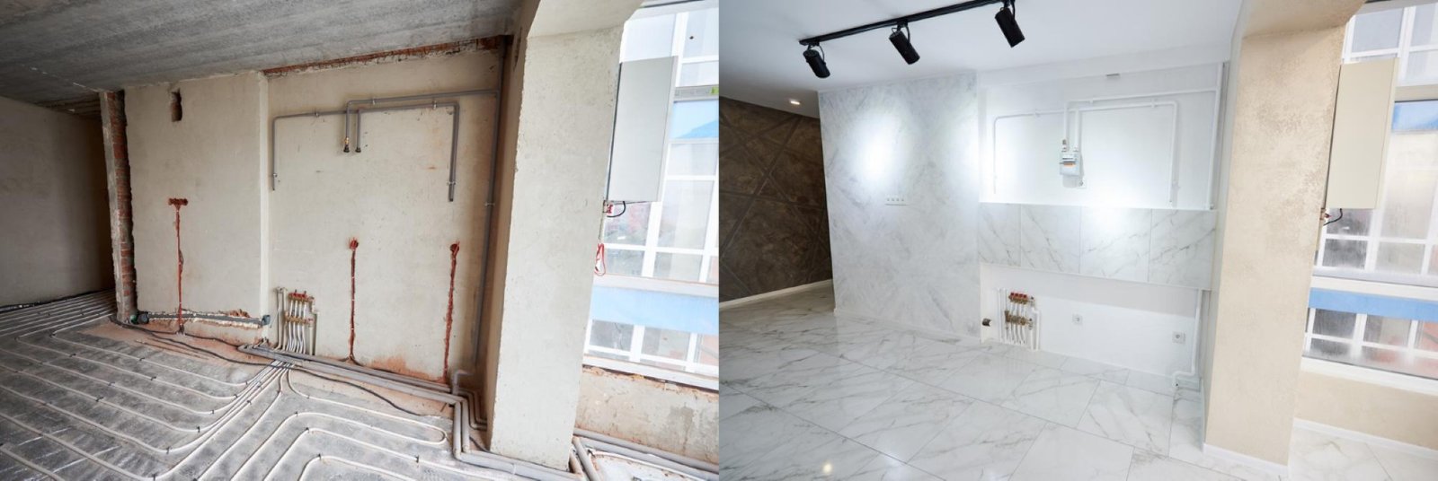 Saubere, gleichmäßige Wände und moderne Oberflächen.